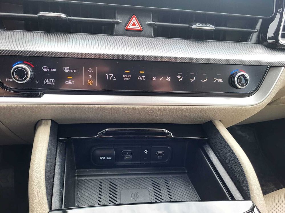 - Zakrzywiony ekran wysokiej rozdzielczości z wyświetlaczem cyfrowych zegarów 12,3” oraz ekranem systemu multimedialnego,ekran dotykowy nawigacji, radio DAB, interfejs Apple CarPlay/Android Auto, usługi Kia Connect